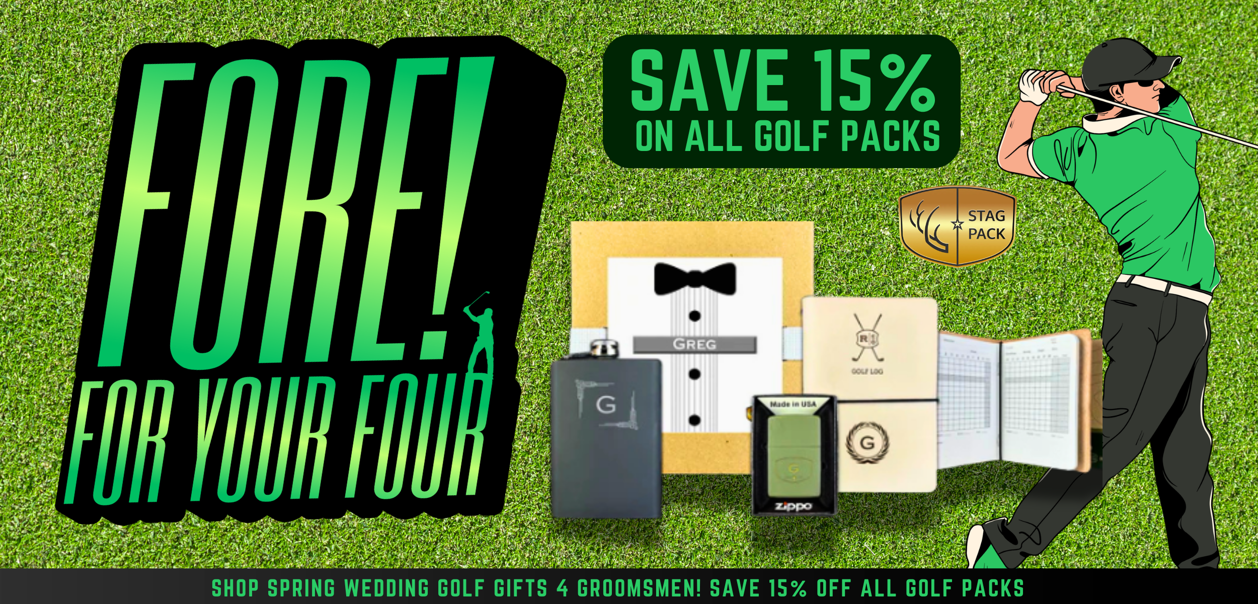 All of our Stag Pack Groomsmen Gift Packs are fully personalized and custom to each of your groomsmen. Each individual product inside of the pack can be engraved, and you choose the box design, box color, strap color, and each pack includes a personalized note from you to your groomsman, which can be printed or left blank to allow you to handwrite your message!